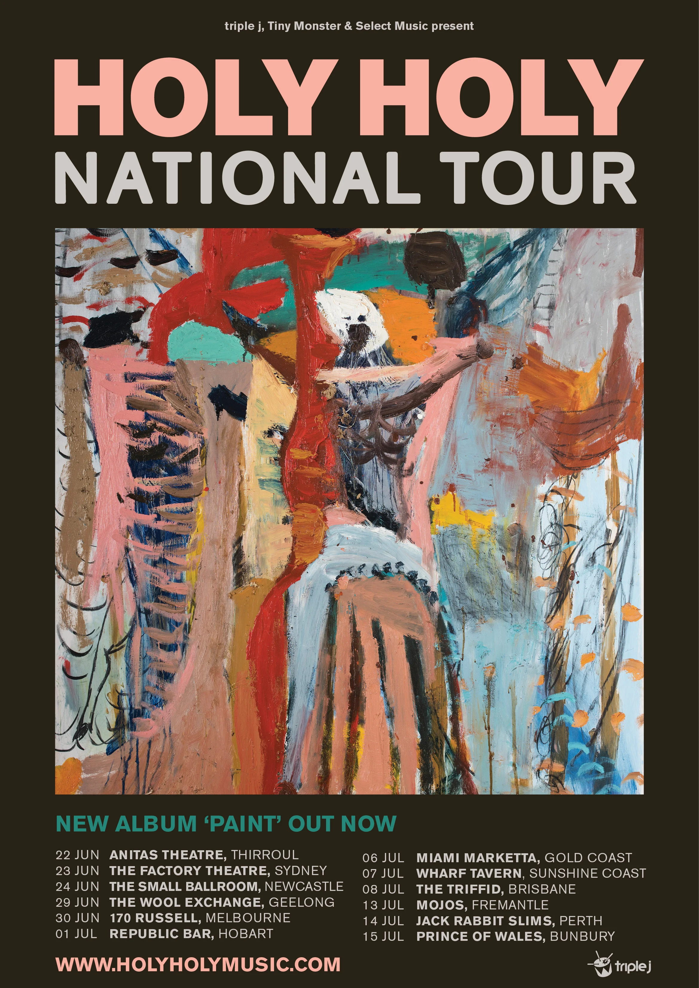 Lauded for their live prowess, in the past 12 months, Holy Holy has captivated sold-out audiences across Australia, to London and The Netherlands continuing to prove themselves as one of Australia’s most important new voices. Following the release of their critically acclaimed second album PAINT, arriving at #7 on the ARIA album chart, they will perform nationally this June and July with a series of capital city and regional dates.