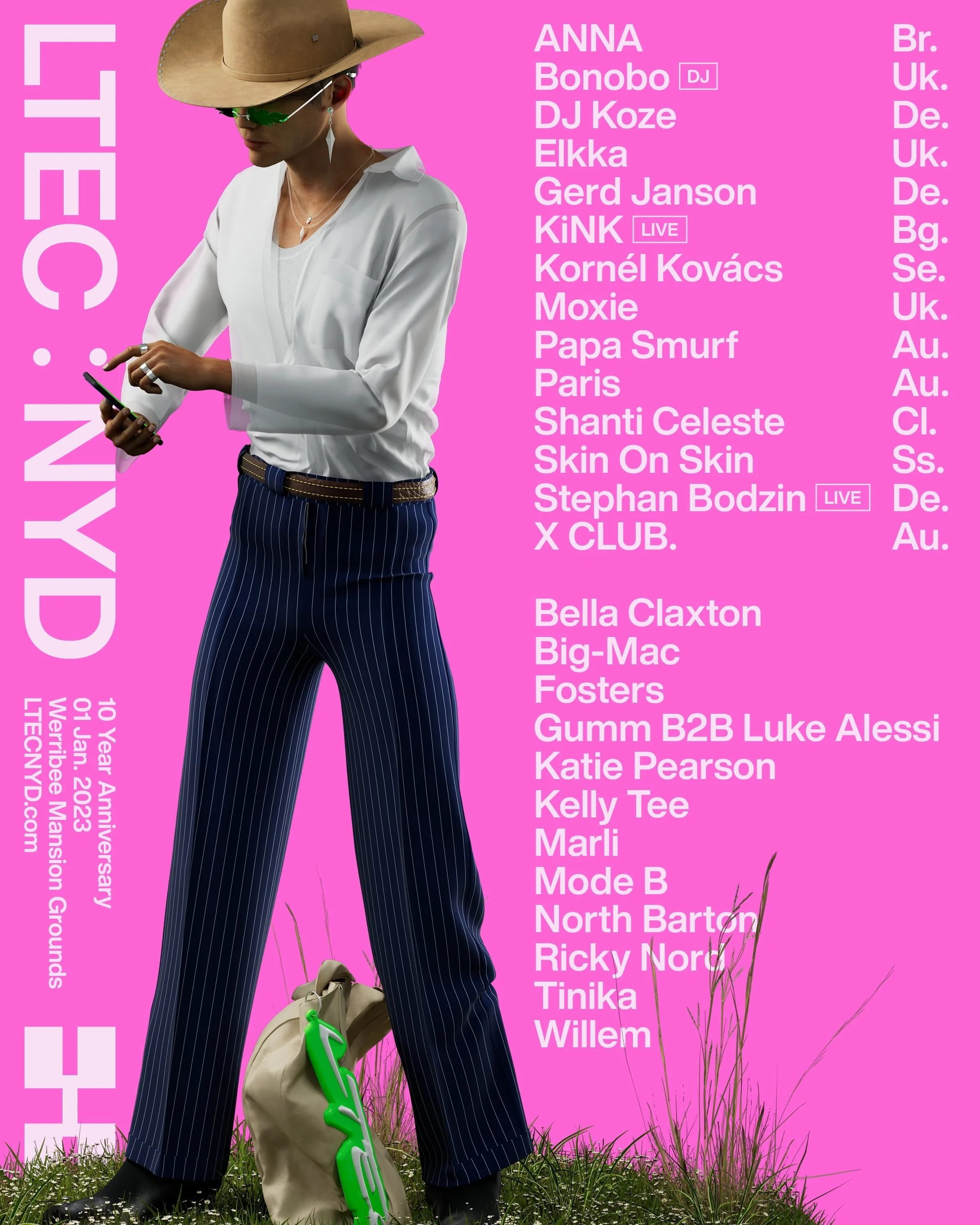Bella Claxton . Big-Mac . Fosters . Gumm b2b Luke Alessi . Katie Pearson . Kelly Tee . Marli . Mode B . North Barton . Ricky Nord . Tinika . Willem